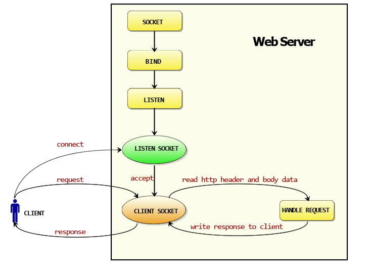 处理客户端的请求, 首先从Client Socket读取HTTP请求的协议头, 如果是POST方法, 还可能要读取客户端提交的数据, 然后交给相应的handler处理请求, handler处理完毕准备好客户端需要的数据, 通过Client Socket写给客户端。